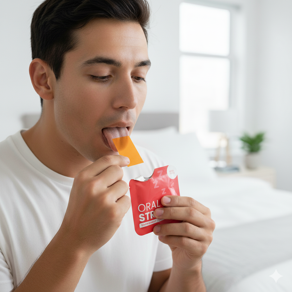 Suggested Use: Place one oral strip on your tongue and allow it to dissolve. Take one oral strip anytime, up to a maximum of 1 strip a day.
