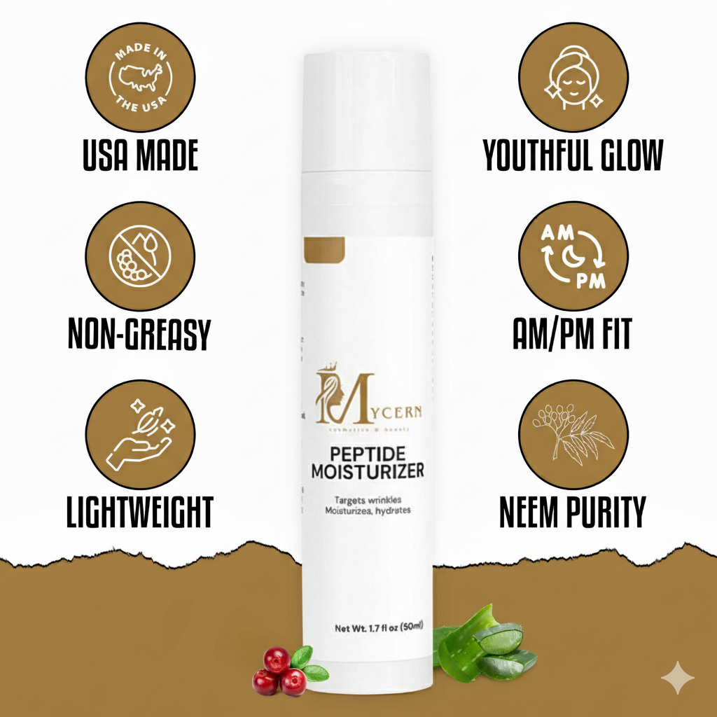 Elevate your skincare game with our Peptide Moisturizer, a powerful yet gentle solution for those looking to hydrate, repair, and rejuvenate their skin. Formulated with an advanced peptide complex, this face moisturizer supports your skin's natural renewal process—helping reduce the appearance of fine lines and improving elasticity over time.
