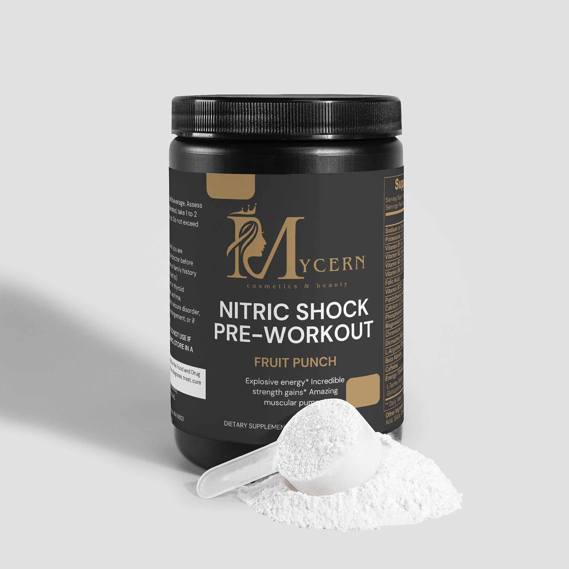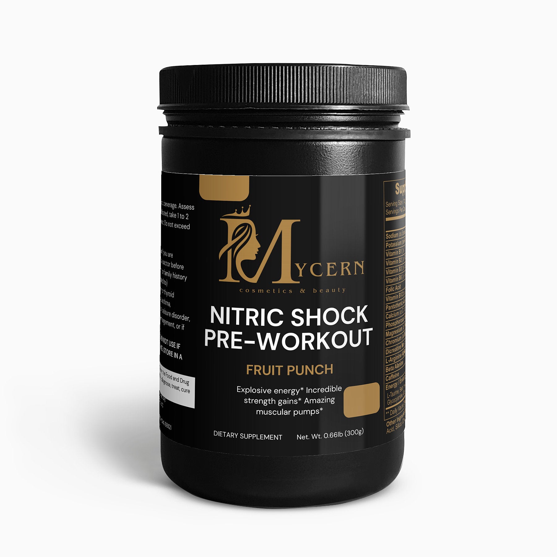 Whether you're hitting the gym early or grinding after a long day, Mycern Nitric Shock Pre Workout Powder is engineered to help you power through. This sugar free formula features 23 nutrients, including caffeine, beta-alanine, taurine powder, and creatine compounds, for a complete energy support system.